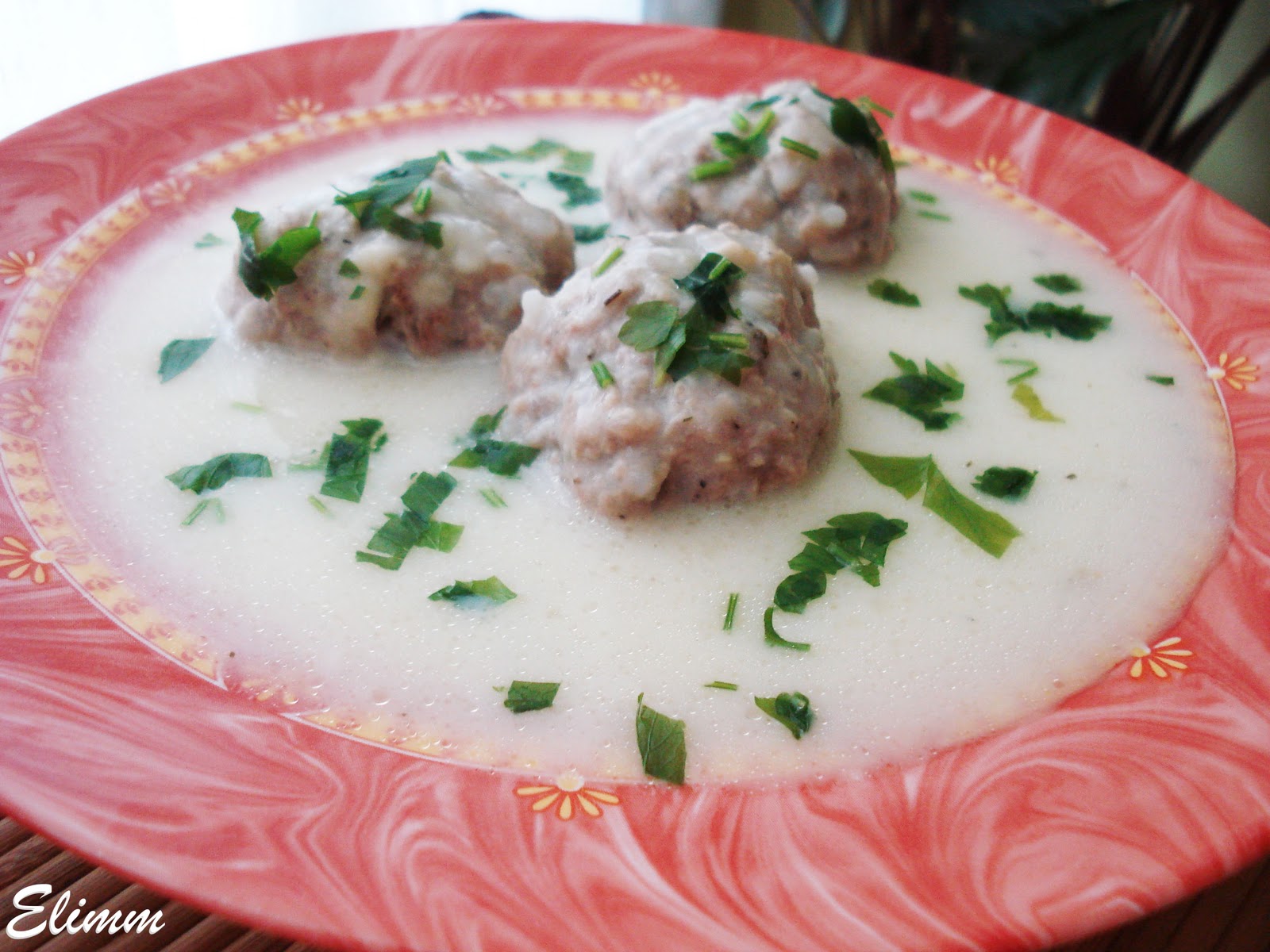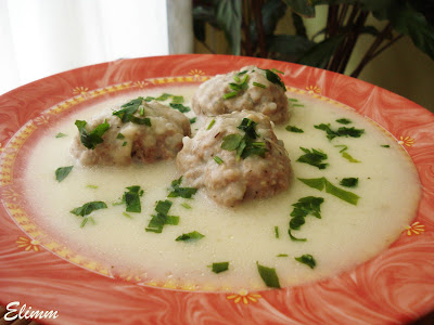 Омесете каймата със ситно нарязания лук и магданоз, добавете чубрицата,ориза и яйцето. В тенджера със вряща вода пуснете бульона и едно по едно оформените кюфтета, който предварително сте оваляли в брашно. Варите докато оризът набъбне. В дълбок тиган загрейте маслото и в него изсипете предварително смесените яйца, брашно и кисело мляко. Бъркайте на слаб огън, докато сместа се посгъсти, след което гребвате от бульона, в който сте варили кюфтетата, и бъркате непрекъснато. Трябва да се получи гъст сос. Сервирайте като залеете кюфтетата със соса и поръсете със свеж магданоз.